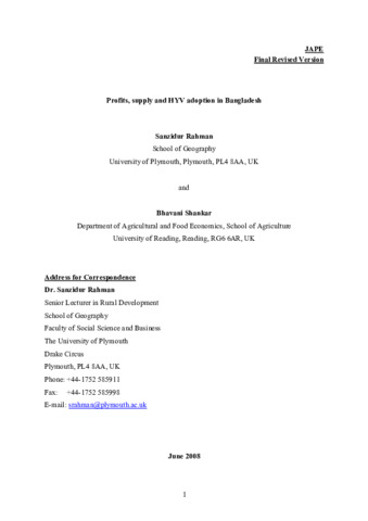 The adoption of HYVs (High Yielding Varieties), for increased farm profitability, and the accelerated supply of cereals are important objectives for Bangladesh agriculture. In this paper, we have investigated the manner in which price and non-price factor affect these three criteria, based upon a model of rational variety choice. The model is empirically implemented using translog profit functions and a switching regression framework, and applied to a cross-sectional farm-level dataset of Bangladeshi farms for the 1996 crop year. Results indicate that rice prices, land availability, irrigation, rural infrastructure, labour wages and prices of animal power services are important factors, while fertilizer price plays a marginal role. Given these results, the policy of liberalization of agricultural inputs (particularly fertilizers) and reforms to maintain high rice prices during harvest seasons appear sound since these allow producers to receive rice prices close to world levels without burdening the government with input subsidies. Result also shows that educated Bangladeshi farmers substitute their time inputs away from agriculture, resulting in lower HYV adoption, farm profitability and rice supply.