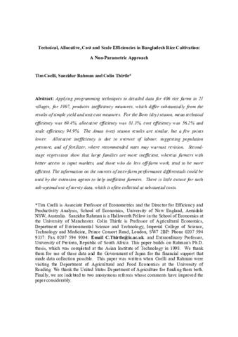 Technical, allocative, cost and scale efficiencies in Bangladesh rice cultivation: a non-parametric approach.