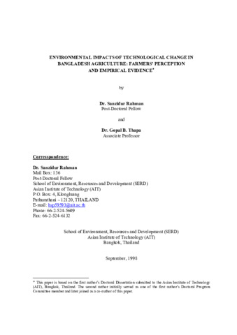 Environmental impacts of technological change in Bangladesh agriculture: farmers' perceptions and empirical evidence.