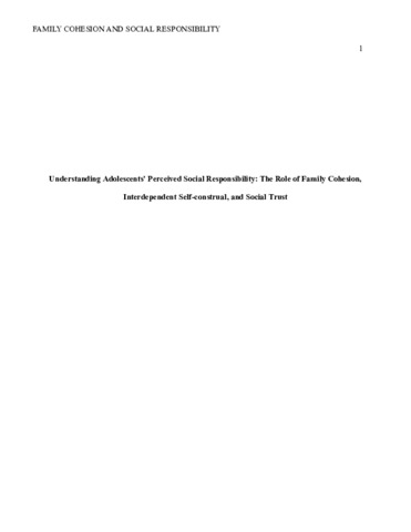 Understanding adolescents’ perceived social responsibility: the role of family cohesion, interdependent self-construal, and social trust.