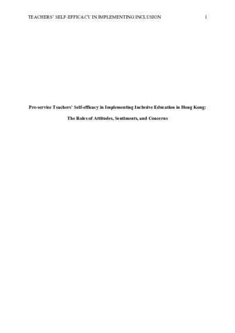 Pre-service teachers’ self-efficacy in implementing inclusive education in Hong Kong: the roles of attitudes, sentiments, and concerns.