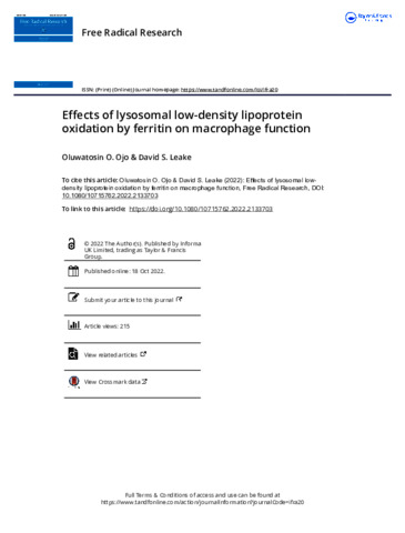 Effects of lysosomal low density lipoprotein oxidation by ferritin on macrophage function.