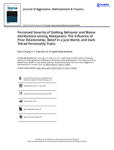 Perceived severity of stalking behavior and blame attributions among Malaysians: the influence of prior relationship, belief in a just world, and Dark Tetrad personality traits