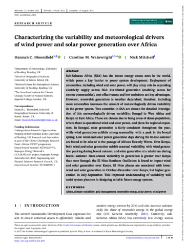 Characterizing the variability and meteorological drivers of wind power and solar power generation over Africa.