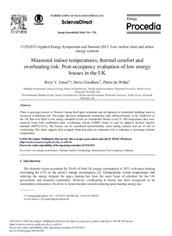 Measured indoor temperatures, thermal comfort and overheating risk: post-occupancy evaluation of low energy houses in the UK.