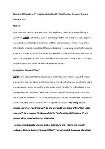 I just don’t think about it: engaging students with critical heritage discourse through science fiction.