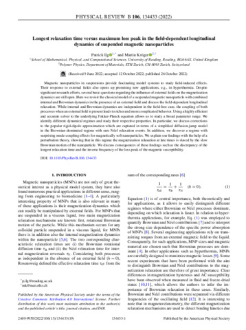 Longest relaxation time versus maximum loss peak in the field-dependent longitudinal dynamics of suspended magnetic nanoparticles.