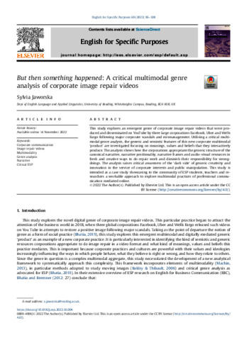 But then something happened: a critical multimodal genre analysis of corporate image repair videos.