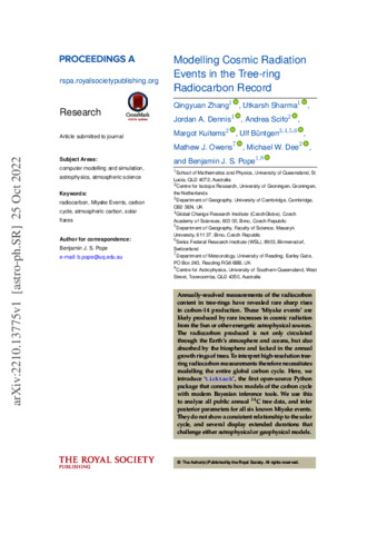 Modelling cosmic radiation events in the tree-ring radiocarbon record.