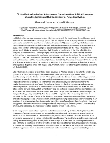 Of fake meat and an anxious Anthropocene: towards a cultural political economy of alternative proteins and their implications for future food systems.
