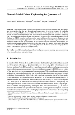 Moin, A., Challenger, M., Badii, A. and Günnemann, S. (2022) Towards model-driven engineering for quantum AI. INFORMATIK 2022, Lecture Notes in Informatics (LNI). pp. 1121-1131. ISSN 1617-5468 doi: 10.18420/inf2022_95