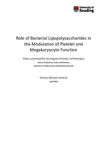Vallance, T. M. (2020) Role of bacterial lipopolysaccharides in the modulation of platelet and megakaryocyte function. PhD thesis, University of Reading. doi: 10.48683/1926.00108666