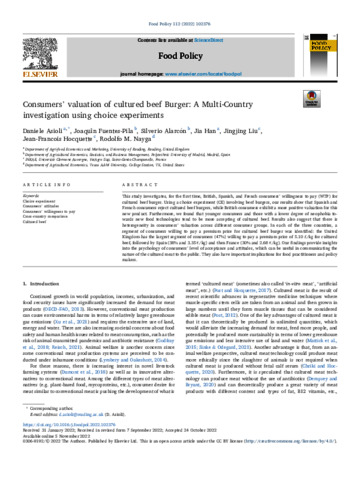 Consumers’ valuation of cultured beef burger: a multi-country investigation using choice experiments.