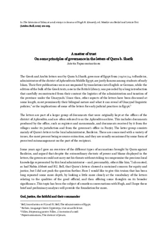 A matter of trust: on some principles of governance in the letters of Qurra b. Sharīk.