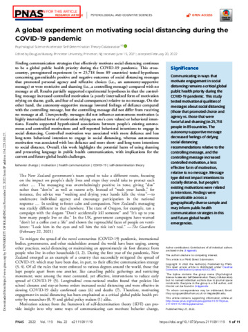 A global experiment on motivating social distancing during the COVID-19 pandemic.