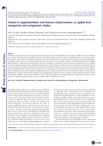 Vitamin D supplementation and immune-related markers: an update from nutrigenetic and nutrigenomic studies.