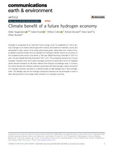Climate benefit of a future hydrogen economy.