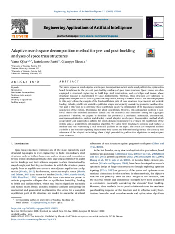 Adaptive search space decomposition method for pre- and post- buckling analyses of space truss structures.