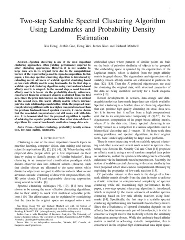 Two-step scalable spectral clustering algorithm using landmarks and probability density estimation.