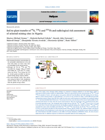 Soil-to-plant transfer of 40K, 238U and 232Th and radiological risk assessment of selected mining sites in Nigeria.