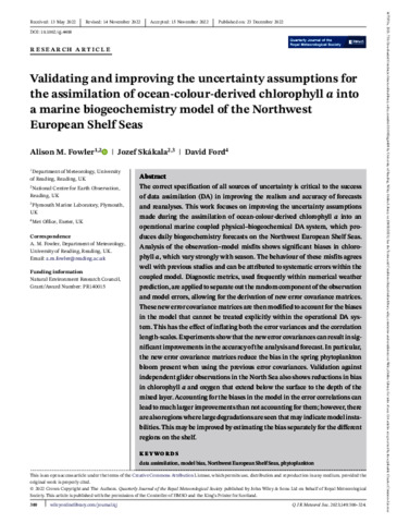 Validating and improving the uncertainty assumptions for the assimilation of ocean colour derived chlorophyll a into a marine biogeochemistry model of the North-West European Shelf Seas.