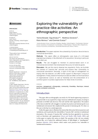 Exploring the vulnerability of practice-like activities: an ethnographic perspective.