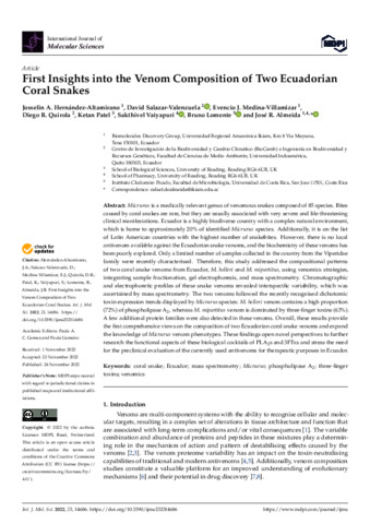 First insights into the venom composition of two Ecuadorian coral snakes.