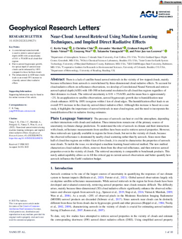 Near‐cloud aerosol retrieval using machine learning techniques, and implied direct radiative effects.
