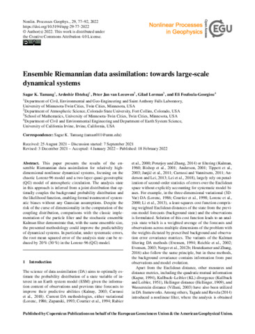 Ensemble Riemannian data assimilation: towards large-scale dynamical systems.