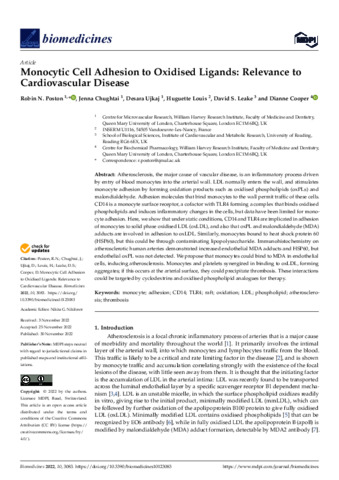 Monocytic cell adhesion to oxidised ligands: relevance to