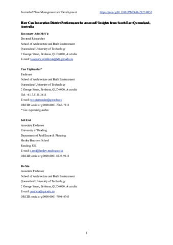 How can innovation district performance be assessed? insights from South East Queensland, Australia.