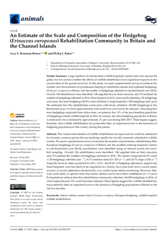 An estimate of the scale and composition of the hedgehog (erinaceus europeaus) rehabilitation community in Britain and the Channel Islands.