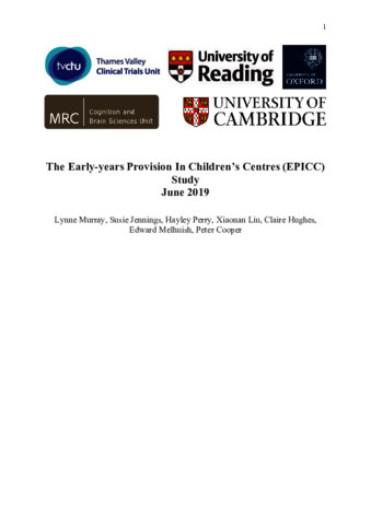 Murray, L., Jennings, S., Perry, H., Liu, X., Hughes, C., Melhuish, E. and Cooper, P., (2022) Report: the early-years provision in children’s centres (EPICC) study. Report. Nuffield Foundation, UK.