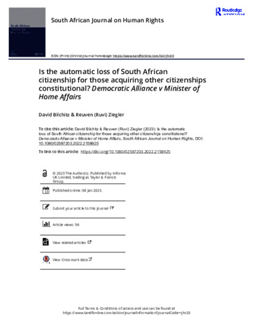 Is automatic loss of South African citizenship for those acquiring other citizenships constitutional? Evaluating Democratic Alliance v the Minister of Home Affairs.