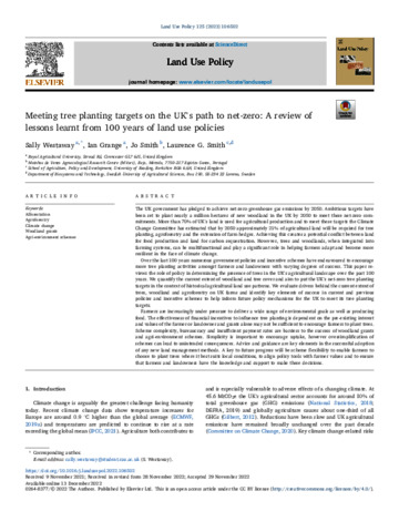 Meeting tree planting targets on the UK's path to net-zero: A review of lessons learnt from 100 years of land use policies.