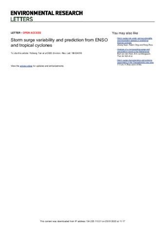 Storm surge variability and prediction from ENSO and tropical cyclones.
