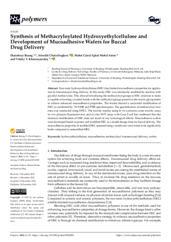 Synthesis of methacryloylated hydroxyethylcellulose and development of mucoadhesive wafers for buccal drug delivery.