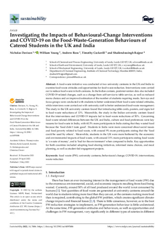 Investigating the impacts of behavioural-change interventions and COVID-19 on the food-waste-generation behaviours of catered students in the UK and India.
