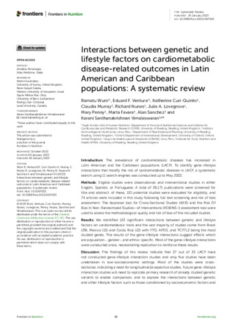 Interactions between genetic and lifestyle factors on cardiometabolic disease-related outcomes in Latin American and Caribbean populations: a systematic review.
