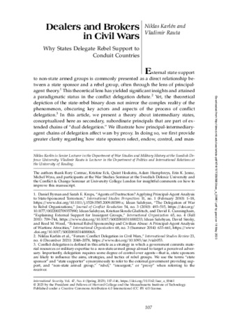 Dealers and brokers in civil wars: why states delegate rebel support to conduit countries.
