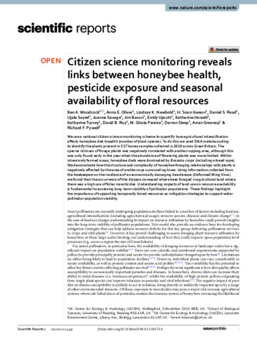 Citizen science monitoring reveals links between honeybee health, pesticide exposure and seasonal availability of floral resources.