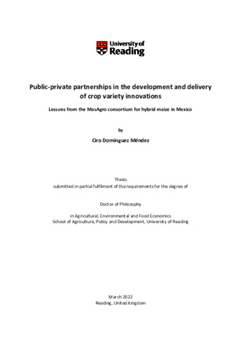 Domínguez, C. (2022) Public-private partnerships in the development and delivery of crop variety innovations: lessons from the MasAgro consortium for hybrid maize in Mexico. PhD thesis, University of Reading. doi: 10.48683/1926.00109807