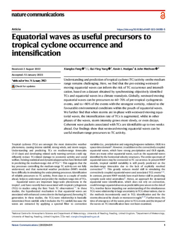 Equatorial waves as useful precursors to tropical cyclone occurrence and intensification.