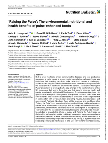 'Raising the pulse': the environmental, nutritional and health benefits of pulse-enhanced foods.