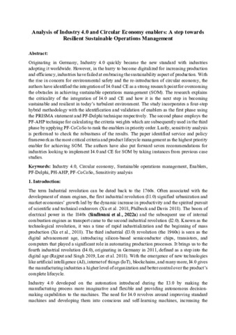 Behl, A., Singh, R., Pereira, V. and Laker, B. orcid id iconORCID: https://orcid.org/0000-0003-0850-9744 (2023) Analysis of industry 4.0 and circular economy enablers: a step towards resilient sustainable operations management. Technological Forecasting and Social Change, 189. 122363. ISSN 1873-5509 doi: 10.1016/j.techfore.2023.122363