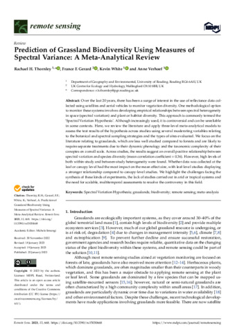 Prediction of grassland biodiversity using measures of spectral variance: a meta-analytical review.
