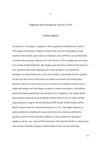Uncontrolled Keywords Beckett on Film, film, television, DVD, YouTube, media convergence, adaptation, remediation, Channel 4, RTE