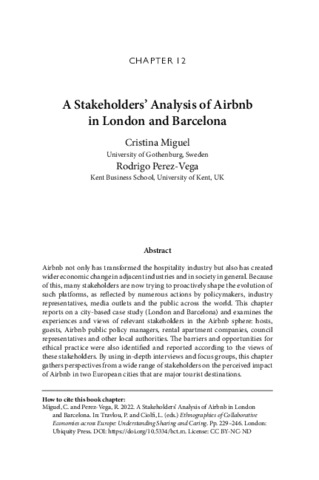 A stakeholders’ analysis of Airbnb in London and Barcelona.