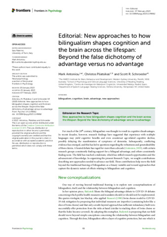 | Additional Information | Special issue of Frontiers in Psychology, ISSN 1664-1078; research Topic: 'New Approaches To How Bilingualism Shapes Cognition And The Brain Across The Lifespan: Beyond The False Dichotomy Of Advantage Versus No Advantage' |