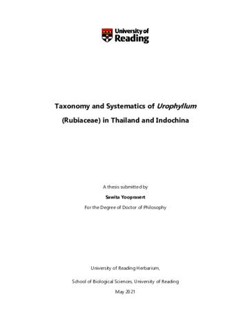 Yooprasert, S. (2021) Taxonomy and systematics of Urophyllum (Rubiaceae) in Thailand and Indochina. PhD thesis, University of Reading. doi: 10.48683/1926.00110024